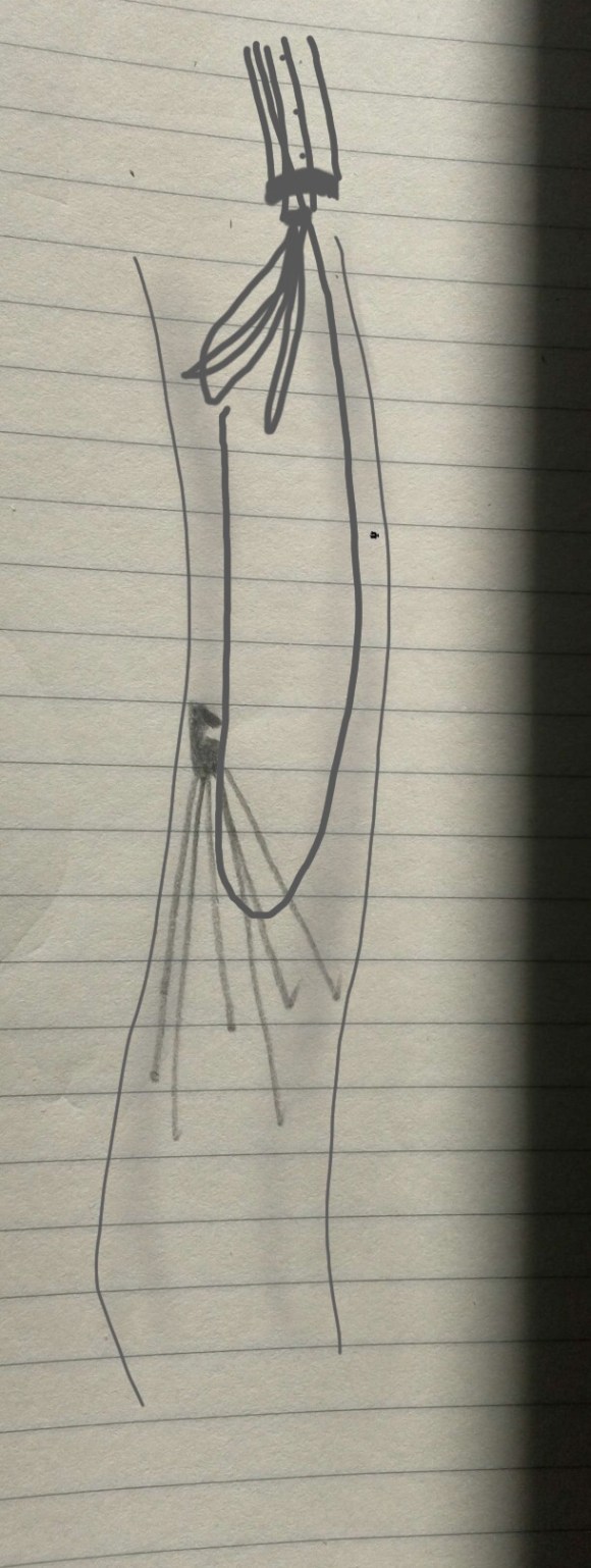I placed another wire through the sheaths and removed the sheaths which were around both the Glidewire which was wrapped, and the second wire which was through. The sheaths were then replaced over that second wire, giving me room to maneuver I inside the 12F sheath. The first wire was then retracted with modest tension and it succeeded in lifting the hook away from the wall, allowing me to snare the hook through the sheaths.