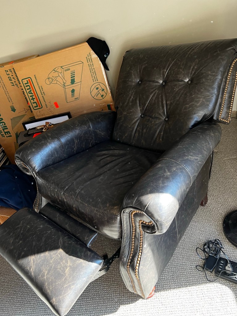 Moving into our new home after four years out of country, I welcome an old friend from storage, but also unfortunately a health hazard, only mitigated by being fully reclinable.