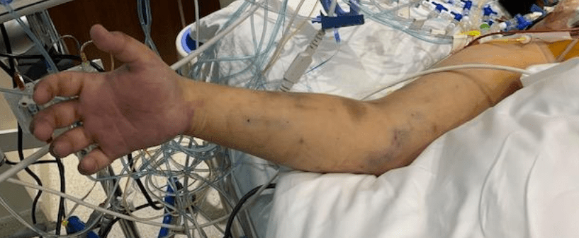 Take this patient who developed severe upper extremity edema in the recovery phase after a cardiac arrest.