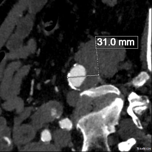 For example, take this patient who after EVAR of aortic aneurysm with AFX developed metachronous dilatation of the common iliac artery to 3.9cm with abdominal pain. The average diameter is 18.5mm. From the table, that rounds to 19mm corresponding to 283.53 square mm. If the internal iliac artery requires a 13mm graft, that is 132.73 square mm, the difference being 150.80 square mm. That corresponds to a 14mm diameter graft, but a slightly larger graft is preferred for oversizing. The external iliac artery is 8mm, and putting a 13mm Viabahn (largest available) in that would result in the B-infolding in the 8mm external iliac. Here, I bailed myself out by simply placing a 20mm AFX iliac limb extension, which by virtue of its design is resistent to infolding and tolerant of parallel grafts laid alongside in constricted channels. I found that the AFX iliac limb, a 20-13mm x 88mm length extension well suited for this.