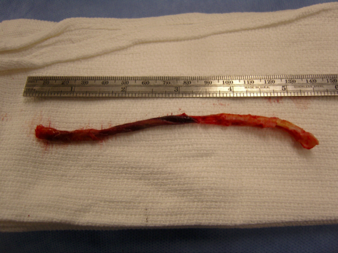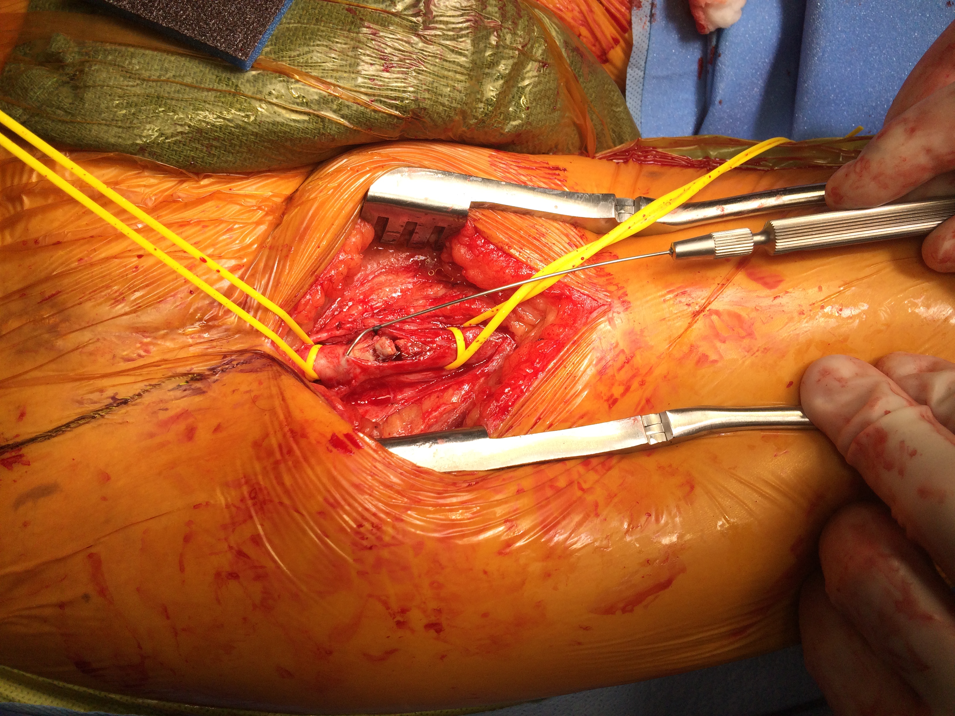 I contacted LeMaitre Vascular and got in touch with your representative, L. Fisher, who promptly sent the Moll Ring Cutters I needed to perform a remote endarterectomy of the patient’s occlusive external iliac and superficial femoral artery plaque. The technical details of remote endarterectomy are have been covered in my blog (https://vascsurg.me/?s=endore), but in the end, through a 7cm incision in the groin (don’t believe the hype, this is minimally invasive), I restored his arteries to their original open condition. Shown below are the results. It was with great sadness that I heard that the LeMaitre Vascular equipment being sent were the last of the stock available in North America. The patient did very well, with the operation completed well before lunch, and is recovering rapidly from his small wound and big rescue. He gets to walk out of the hospital on two legs, but also with the surety that he avoided a major bypass operation, and avoided the short term gains of stenting from the aorta to the profunda -more peel packs and landfill items and a dubious long term durability. Hey, I even used a XenoSure patch on the common femoral.