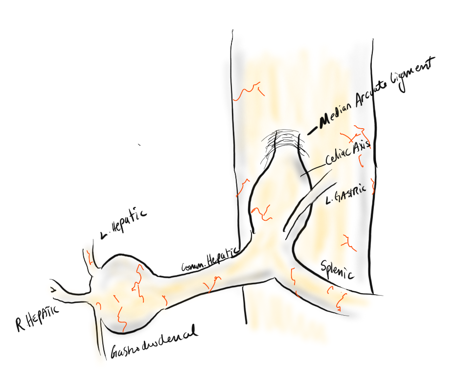 The image above shows a common femoral artery aneurysm presenting as a pulsatile mass in the right groin. The first image on left is an arteriogram (a sketch of one) that I would get prior to surgery. The patient is also suffering from pain in the right leg due to a lack of blood flow because his superficial femoral artery (SFA) is occluded and his profunda femoral artery (PFA) is open but has a blockage at its origin where the aneurysm ends. I plan the surgery and execute it. During surgery, things may pop up -good things like finding an otherwise pristine SFA filled with plaque. Removing the plaque, it becomes a great conduit for replacing the aneurysm and avoids using an expensive graft which can become infected -your own tissues fight off infection better than graft.